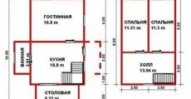 Another home plan is presented without a balcony and a terrace. With a less complex crypt, much more rooms were available. This house-planning option allows the most rational use of available space for building construction.